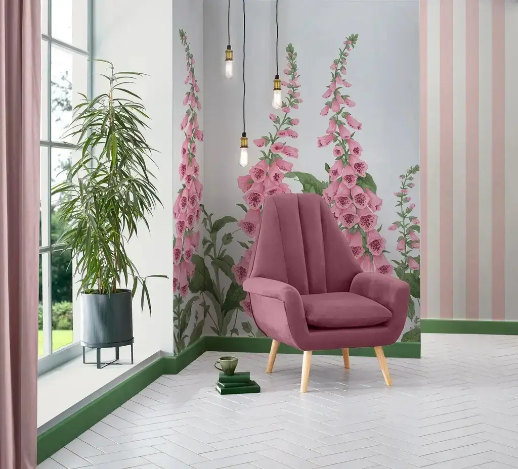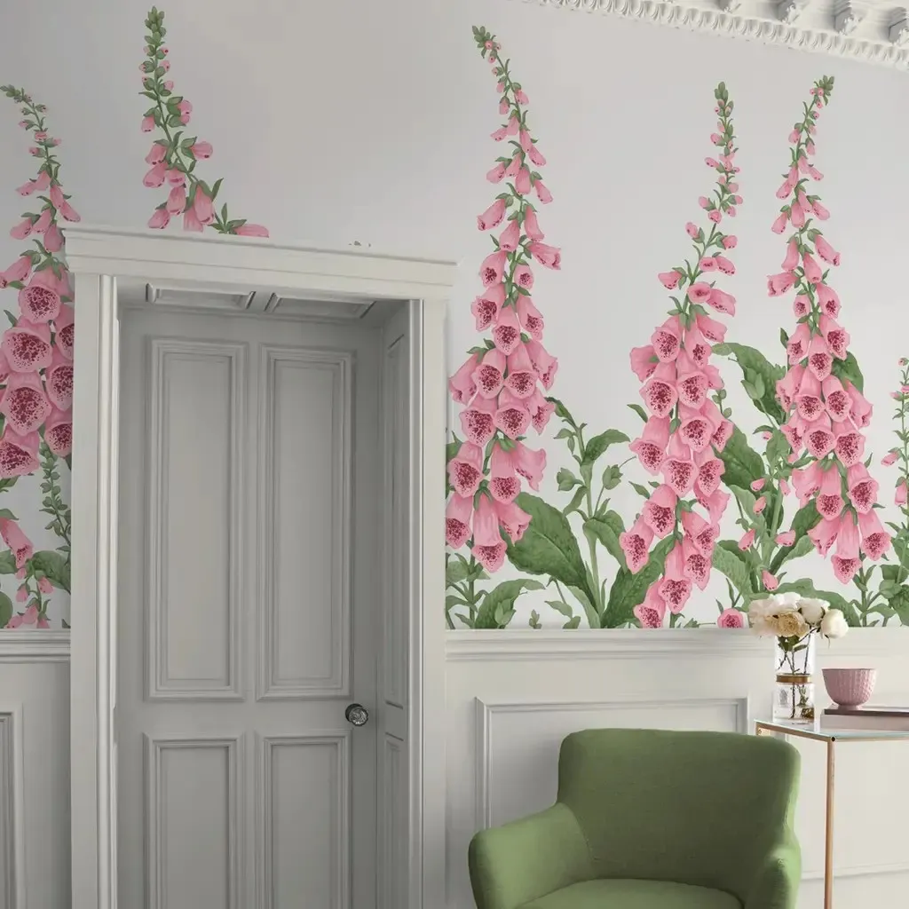 Foxglove Day Bespoke Mural brings soft floral elegance and artistic detail to any room creating a bright calming atmosphere perfect for feature walls in modern living rooms bedrooms or creative spaces.