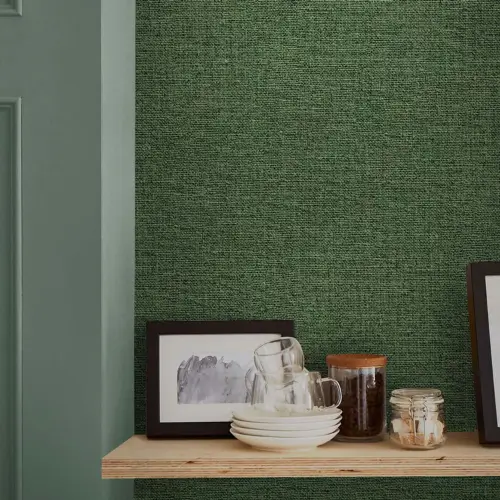 Haptic Green Textured Kitchen Wallpaper brings rich Adeline green tones with a refined texture. Ideal for accent or full walls, it adds depth, warmth & a forest-inspired charm to Abu Dhabi kitchens.