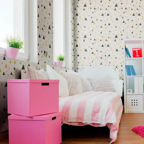 The Peach & Yellow Geometric Teens Wallpaper adds a modern, vibrant touch to teen rooms. With easy peel-and-stick use, it’s removable, stylish, and perfect for creative wall makeovers.