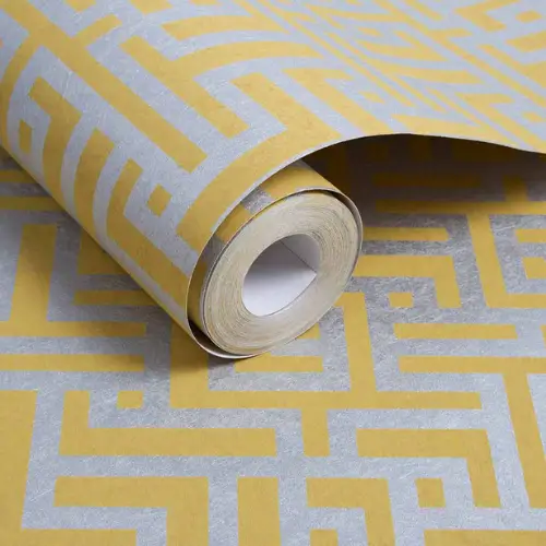 Inspired by Japanese Shoji screens, this geometric Saffron Shoji Geometry Wallpaper pairs a silver metallic finish with rich saffron yellow. Bright and modern, it’s ideal for feature walls or full-room style.