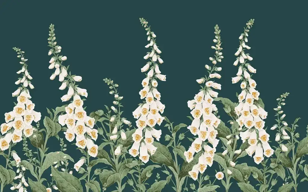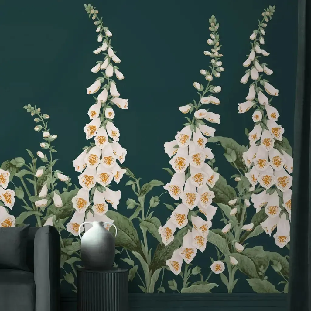 Teal Foxglove Bespoke Wall Mural brings fresh color and soft floral art to your room creating a peaceful stylish and eye-catching feature wall.